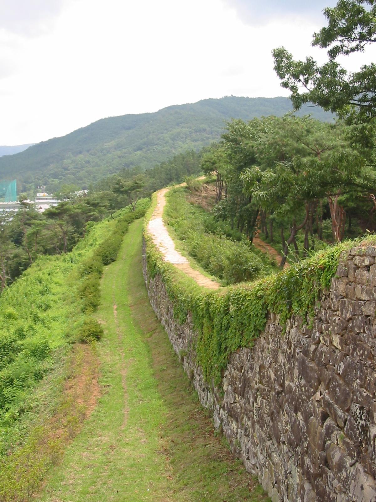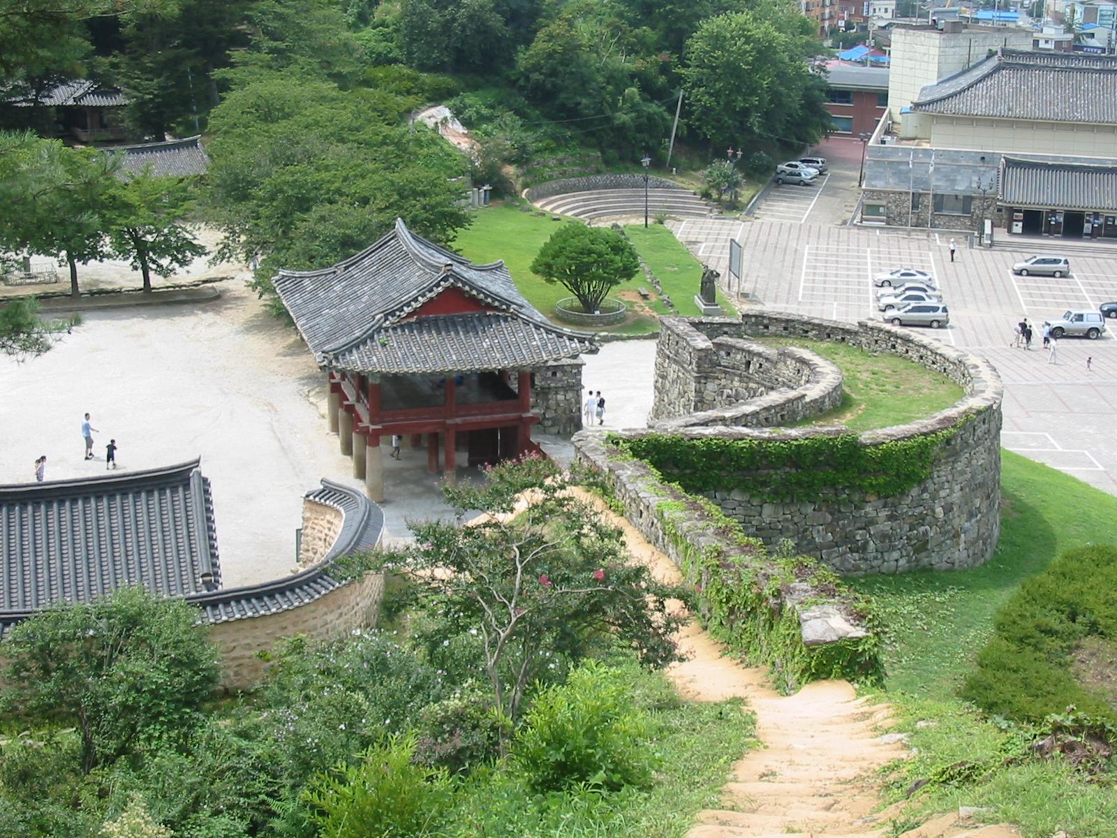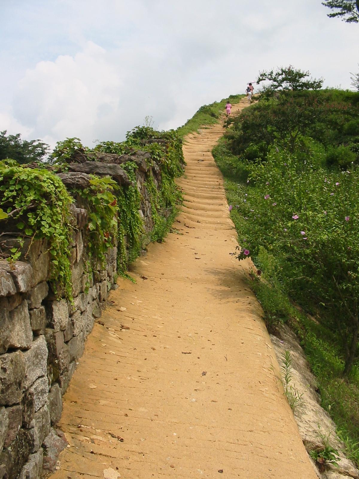 엄마 뒤를 따라 성곽길을 오르는 두 아이의 모습이 아름답다.